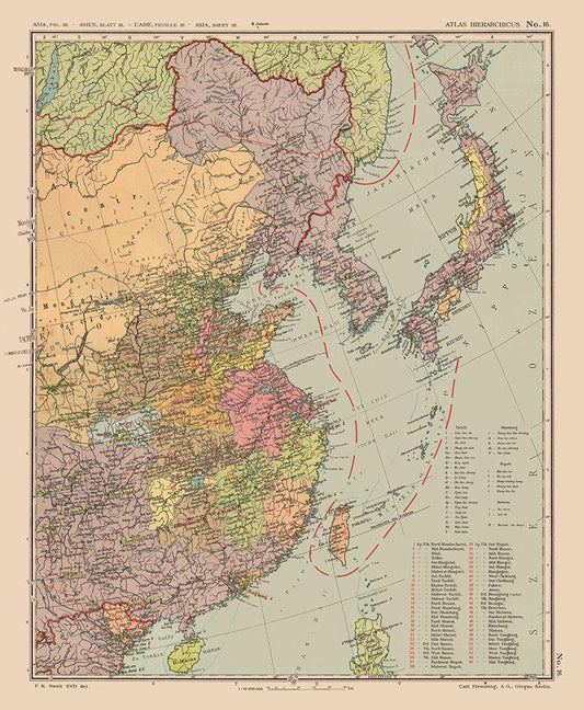 Asia China Japan Korea - Streit 1913 White Modern Wood Framed Art Print with Double Matting by Streit