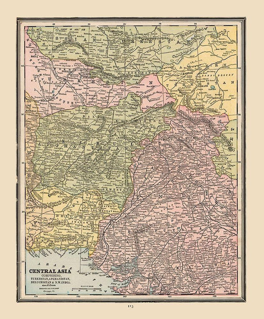 Central Asia - Cram 1888 White Modern Wood Framed Art Print with Double Matting by Cram