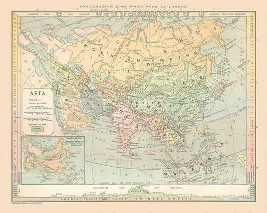 Asia Russia India Mongolia Tibet - Streit 1913 White Modern Wood Framed Art Print with Double Matting by Streit
