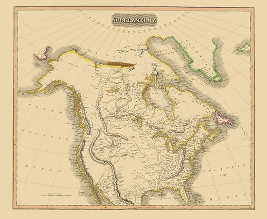 North America - Thomson 1814 White Modern Wood Framed Art Print with Double Matting by Thomson