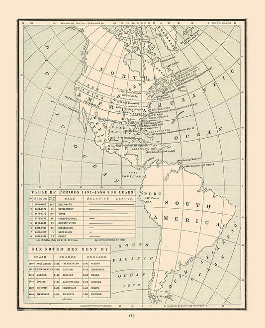 Explorers of Americas - Cram 1892 White Modern Wood Framed Art Print with Double Matting by Cram