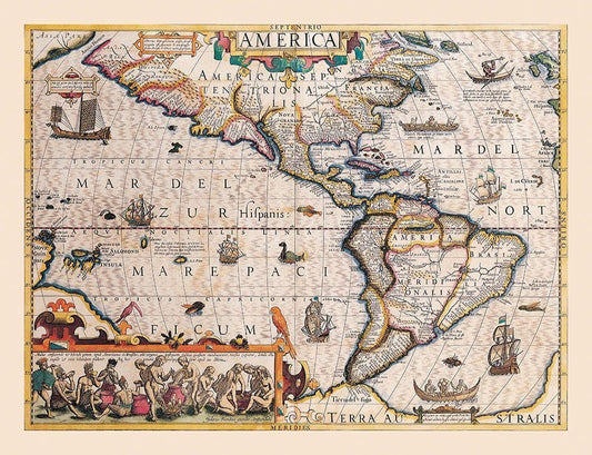 America - Hondius 1607 White Modern Wood Framed Art Print with Double Matting by Hondius