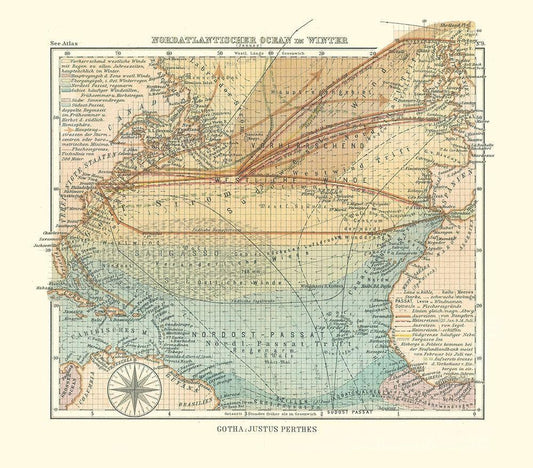 North Atlantic Ocean in Winter - Perthes 1914 White Modern Wood Framed Art Print with Double Matting by Perthes
