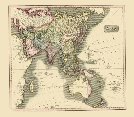 Asia Australia - Thomson 1814 White Modern Wood Framed Art Print with Double Matting by Thomson