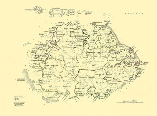 Antigua - Jefferys 1775 White Modern Wood Framed Art Print with Double Matting by Jefferys