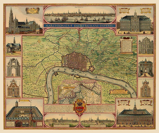 Antwerp Area Belgium Benelux - Visscher 1624 White Modern Wood Framed Art Print with Double Matting by Visscher