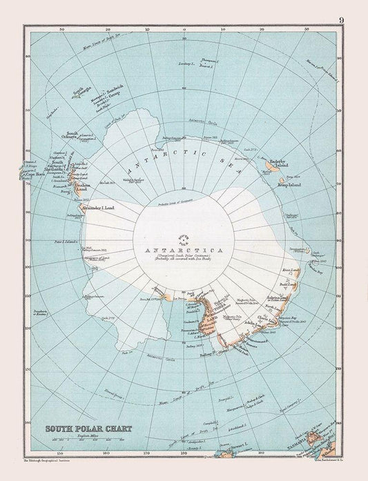 Antarctica - Bartholomew 1892 White Modern Wood Framed Art Print with Double Matting by Bartholomew