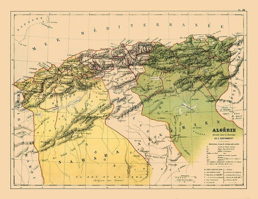 Algeria Africa - Cortambert 1880 White Modern Wood Framed Art Print with Double Matting by Cortambert