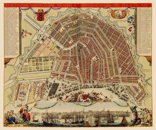 Amsterdam Panoramic Netherlands - De Wit 1688 White Modern Wood Framed Art Print with Double Matting by De Wit