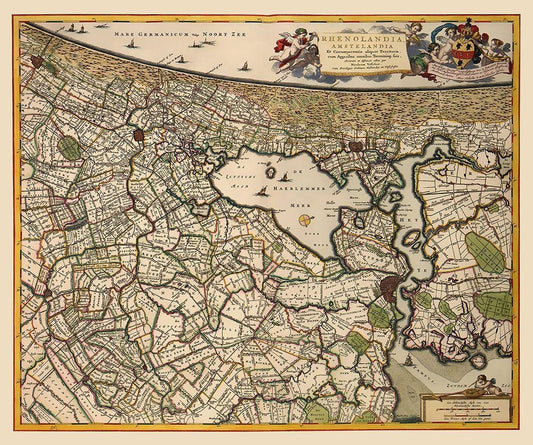 Amsterdam Area - Visscher 1681 White Modern Wood Framed Art Print with Double Matting by Visscher