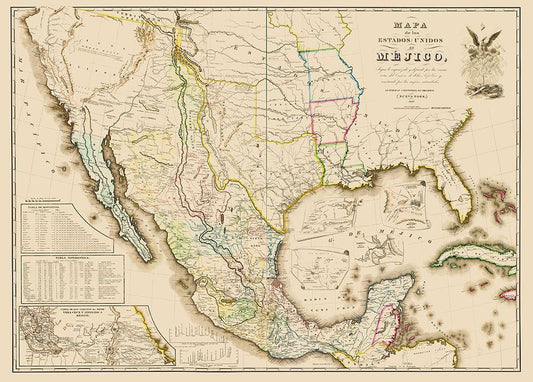 Mexico United States Territories - Disturnell 1847 White Modern Wood Framed Art Print with Double Matting by Disturnell