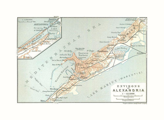 Alexandria Environs Egypt - Baedeker 1913 White Modern Wood Framed Art Print with Double Matting by Baedeker