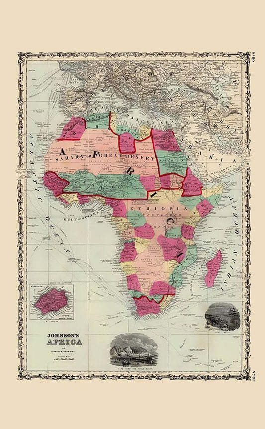 Africa - Johnson 1860 White Modern Wood Framed Art Print with Double Matting by Johnson
