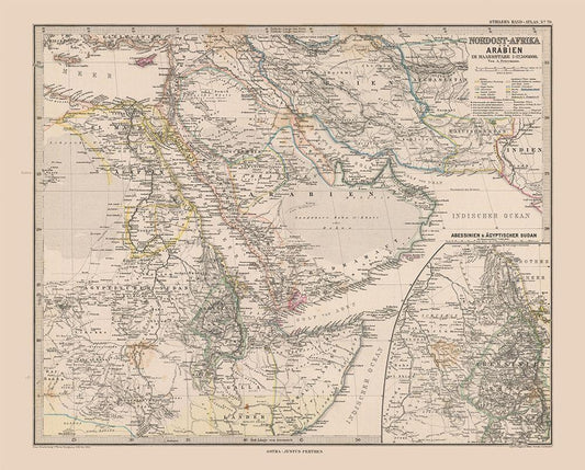 North East Africa Arabia - Stieler 1885 White Modern Wood Framed Art Print with Double Matting by Stieler