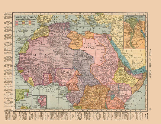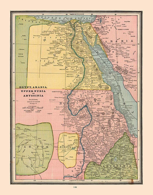 Egypt Arabia Upper Nubia Abyssinia - Cram 1888 White Modern Wood Framed Art Print with Double Matting by Cram