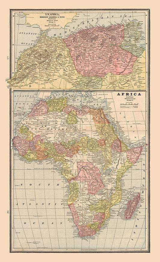 Africa North West Africa - Cram 1888 White Modern Wood Framed Art Print with Double Matting by Cram