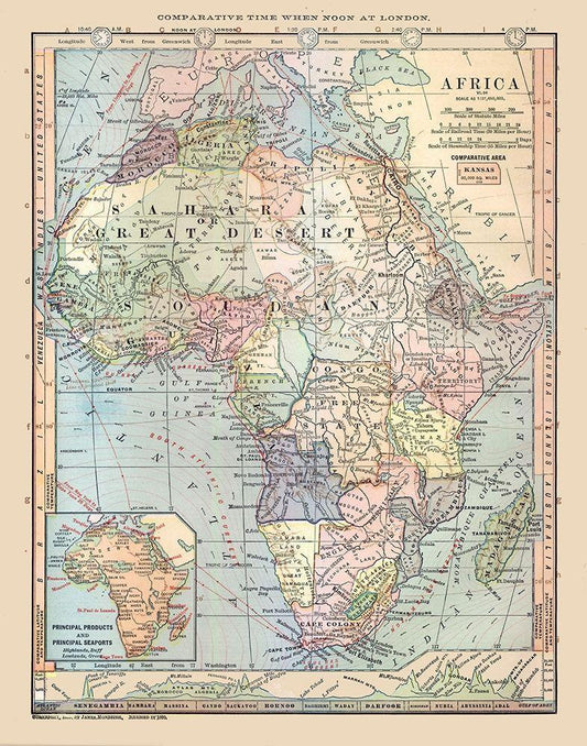 Africa - Gardiner 1897 White Modern Wood Framed Art Print with Double Matting by Gardiner
