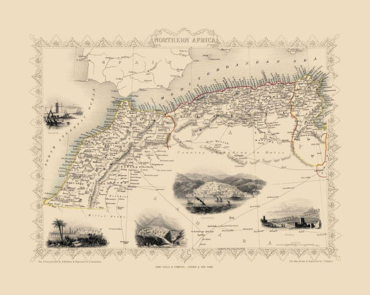 Northern Africa - Tallis 1851 White Modern Wood Framed Art Print with Double Matting by Tallis