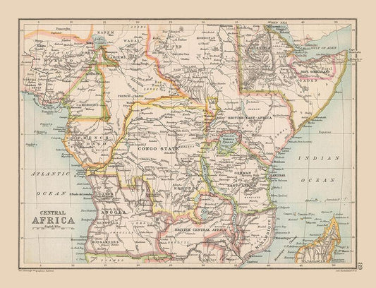 Central Africa - Bartholomew 1892 White Modern Wood Framed Art Print with Double Matting by Bartholomew