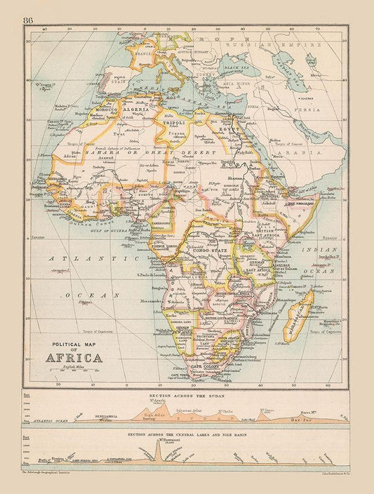 Political Africa - Bartholomew 1892 White Modern Wood Framed Art Print with Double Matting by Bartholomew
