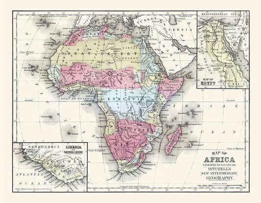 Africa - Mitchell 1877 White Modern Wood Framed Art Print with Double Matting by Mitchell