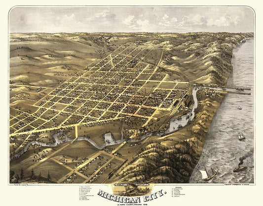 Michigan City Indiana - Ruger 1869 White Modern Wood Framed Art Print with Double Matting by Ruger