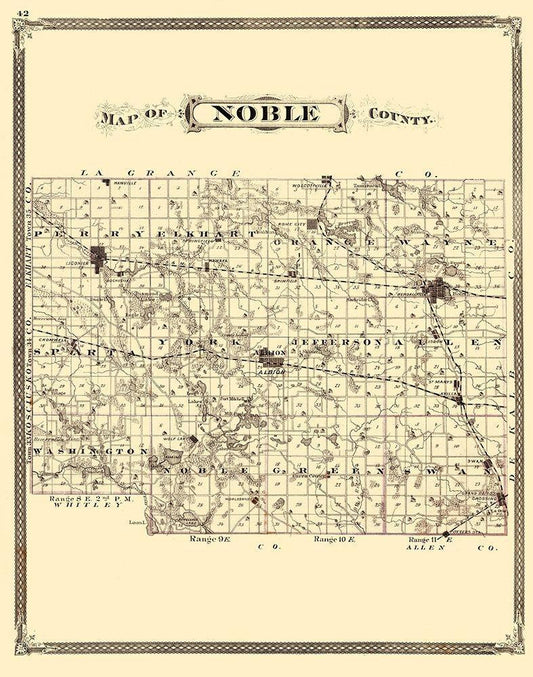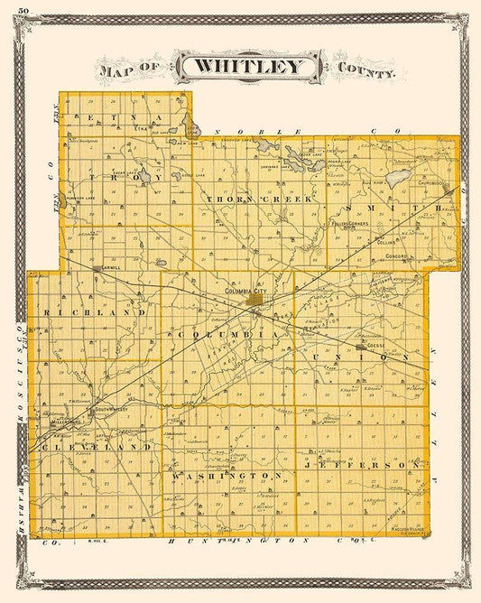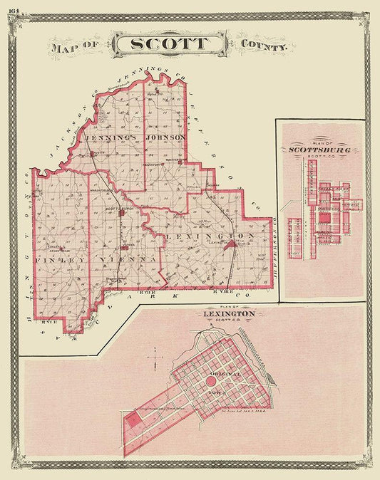 Rush Indiana Landowner - Andreas 1876 White Modern Wood Framed Art Print with Double Matting by Andreas