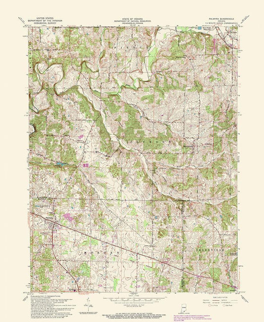 Palmyra Indiana Quad - USGS 1988 White Modern Wood Framed Art Print with Double Matting by USGS