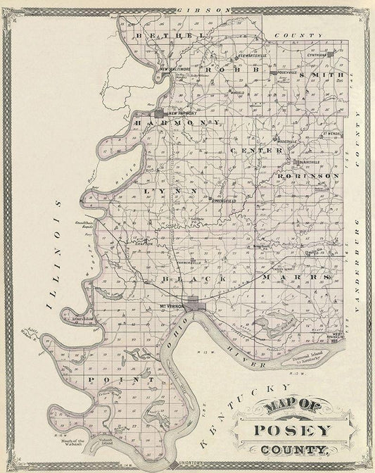 Posey Indiana Landowner - Andreas 1876 White Modern Wood Framed Art Print with Double Matting by Andreas