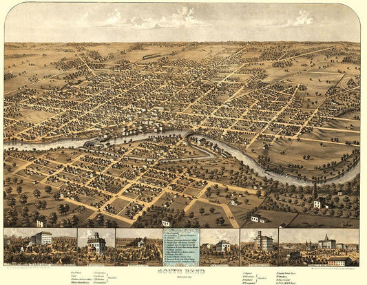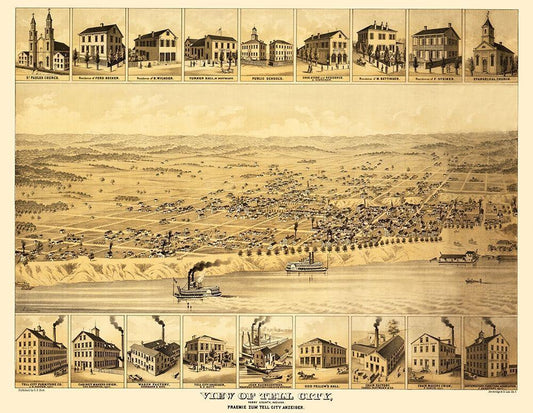 Tell City Indiana - Strobridge 1870 White Modern Wood Framed Art Print with Double Matting by Strobridge