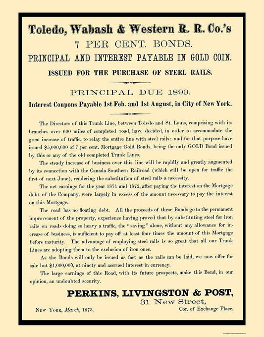 Toledo, Wabash and Western Railway 2 - Colton 1873 White Modern Wood Framed Art Print with Double Matting by Colton