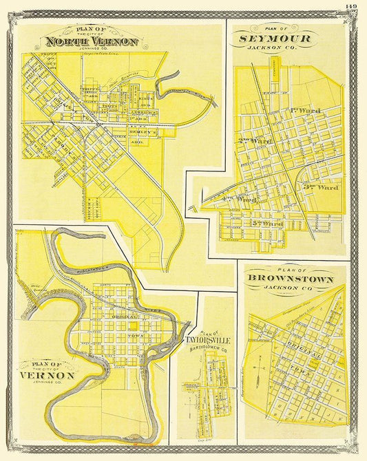 Vernon, Seymour, Brownstone Indiana - Baskin 1876 White Modern Wood Framed Art Print with Double Matting by Baskin
