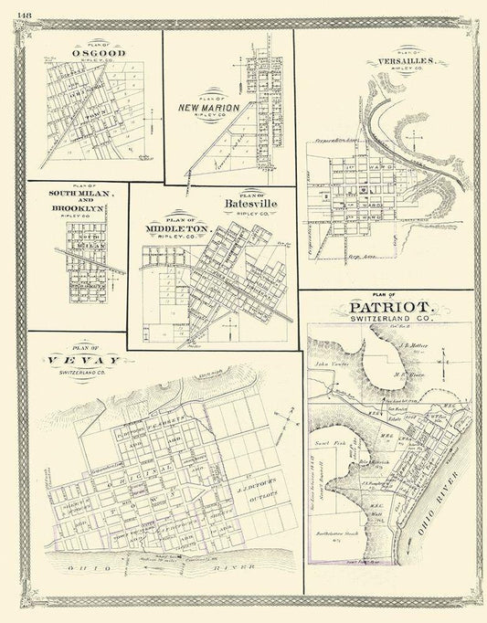 Ripley Indiana - Baskin 1876 White Modern Wood Framed Art Print with Double Matting by Baskin