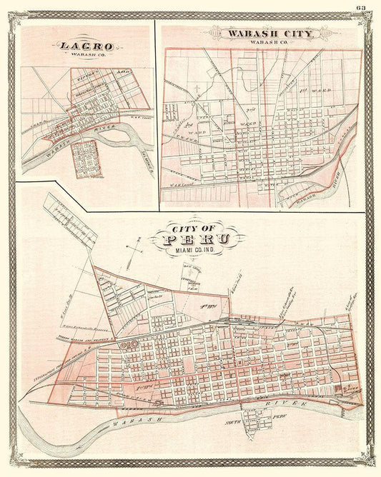 Valparaiso Indiana - Baskin 1876 White Modern Wood Framed Art Print with Double Matting by Baskin