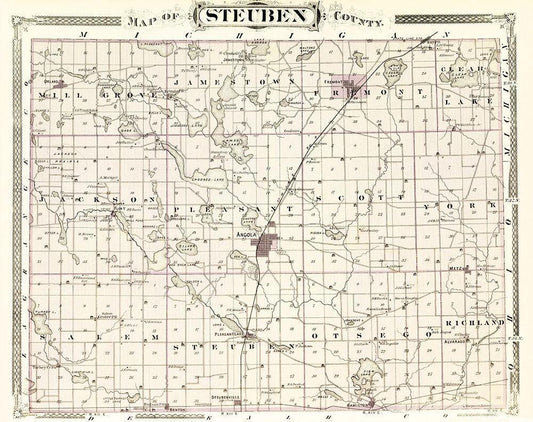 Steuben Indiana - Baskin 1876 White Modern Wood Framed Art Print with Double Matting by Baskin