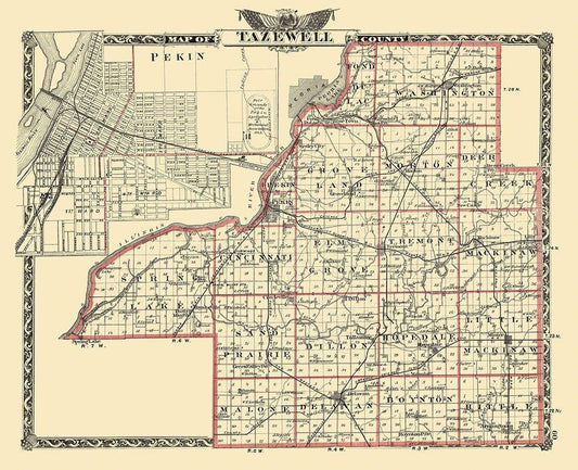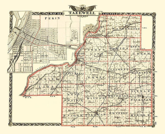 Tazewell Illinois Landowner - Warner 1876 White Modern Wood Framed Art Print with Double Matting by Warner