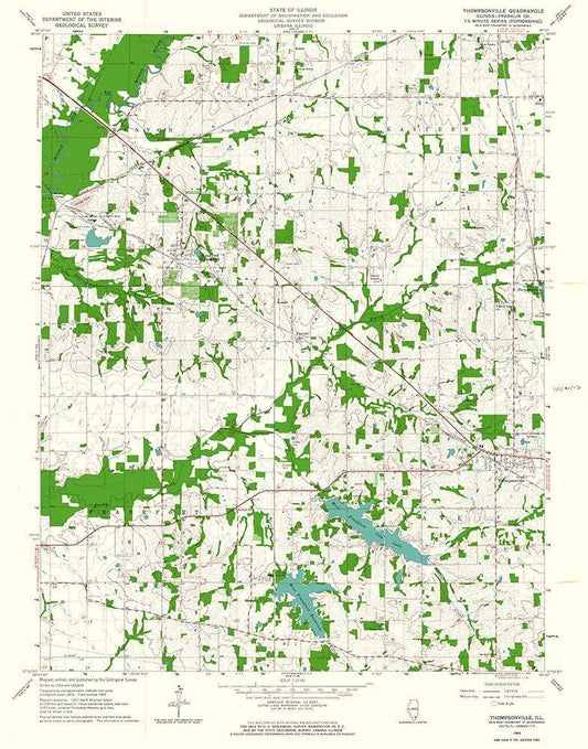 Thompsonville Illinois Quad - USGS 1963 White Modern Wood Framed Art Print with Double Matting by USGS