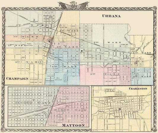 Urbana, Champaign, Mattoon, Charleston Illinois White Modern Wood Framed Art Print with Double Matting by Warner