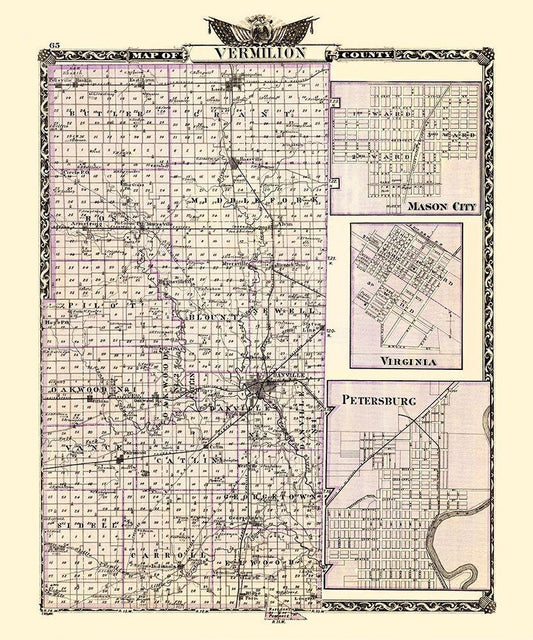 Vermilion Illinois Landowner - Warner 1870 White Modern Wood Framed Art Print with Double Matting by Warner