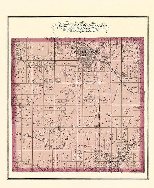 Virginia Illinois Landowner - Brink 1874 White Modern Wood Framed Art Print with Double Matting by Brink