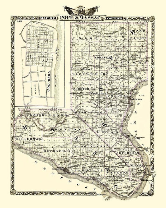 Pope Massac Illinois - Warner 1870 White Modern Wood Framed Art Print with Double Matting by Warner