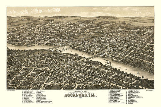 Rockford Illinois - Beck 1880 White Modern Wood Framed Art Print with Double Matting by Beck