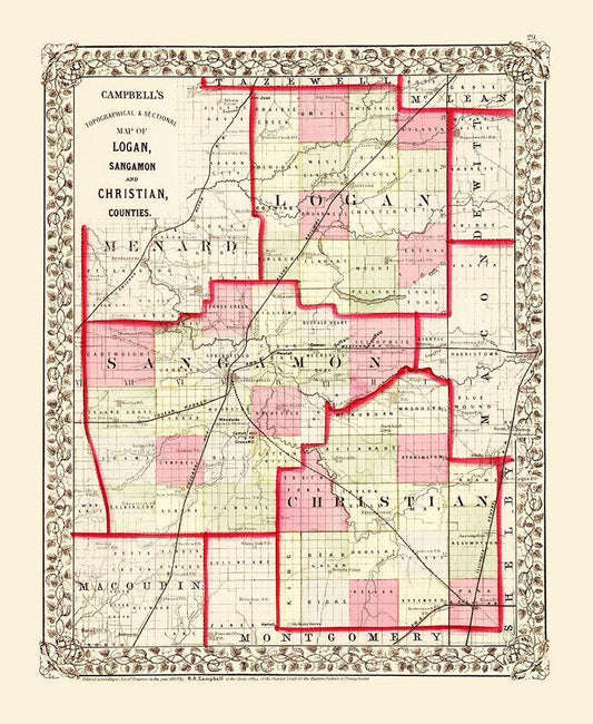 Sangamon Logan Christian Illinois - Campbell White Modern Wood Framed Art Print with Double Matting by Campbell
