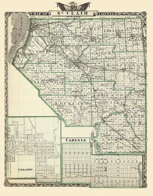 St Clair Illinois Landowner - Warner 1876 White Modern Wood Framed Art Print with Double Matting by Warner