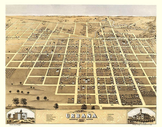 Urbana Illinois - Ruger 1869 White Modern Wood Framed Art Print with Double Matting by Ruger