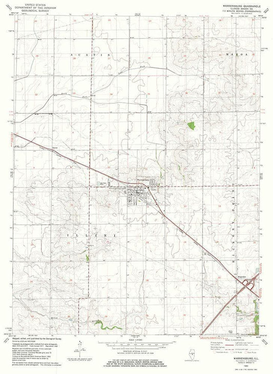 Warrensburg Illinois Quad - USGS 1982 White Modern Wood Framed Art Print with Double Matting by USGS