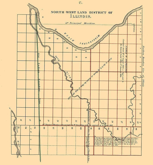 Northwest Land District Illinois - Spaulding 1836 White Modern Wood Framed Art Print with Double Matting by Spaulding