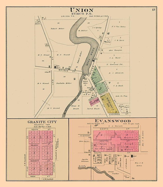 Union, Granite City, Evanswood Wisconsin White Modern Wood Framed Art Print with Double Matting by Foote