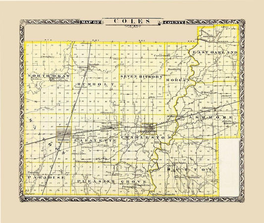 Coles Illinois - Warner 1876 White Modern Wood Framed Art Print with Double Matting by Warner