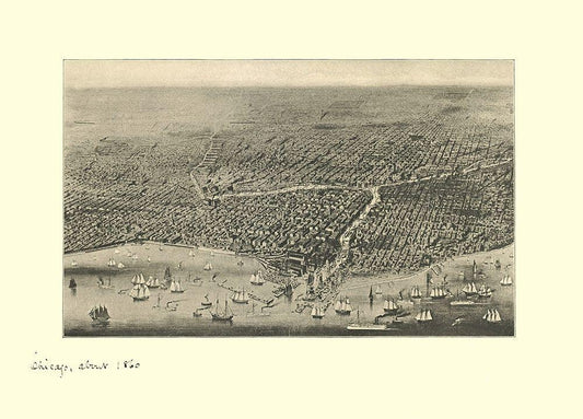 Chicago Illinois - Davis 1860 White Modern Wood Framed Art Print with Double Matting by Davis